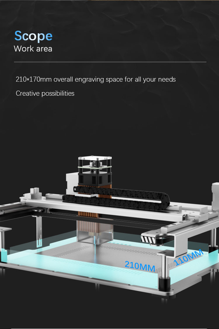 - Working range: 210 x 110mm