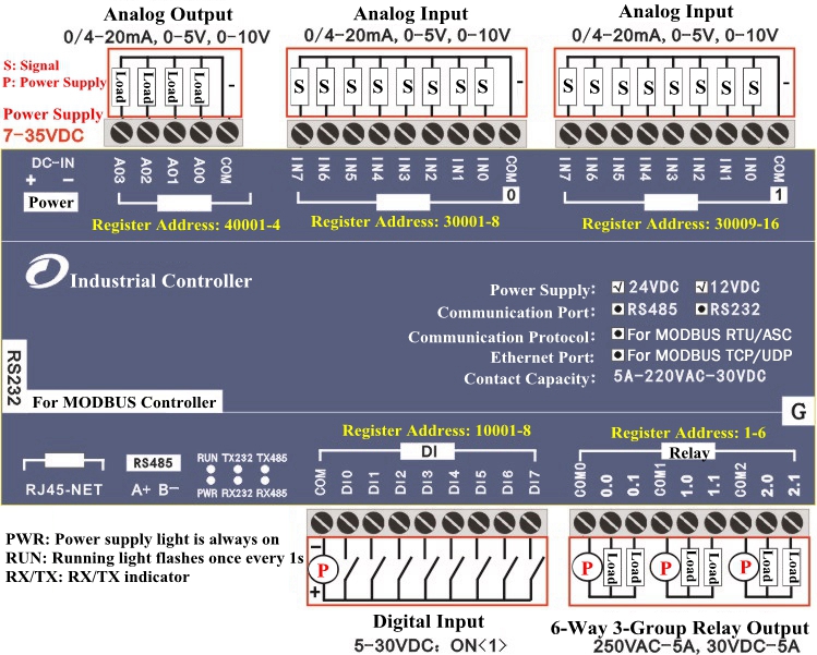 Support RS232, RS485 interface, for Modbus protocol touch screen, text screen.