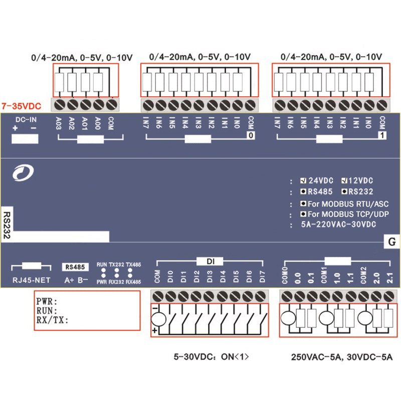 TCP-508S Data Acquisition Industrial Controller Module 16AI+4AO+8DI+6DO + RS485 + RS232 + Ethernet