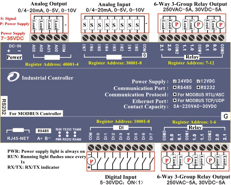 Support RS232, RS485 interface, for Modbus protocol touch screen, text screen.