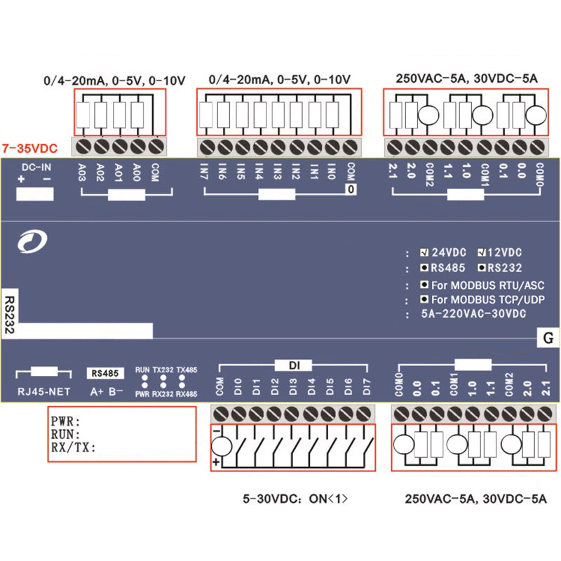 TCP-508V Data Acquisition Industrial Controller 8AI + 4AO + 8DI + 12DO + Ethernet + RS485 + RS232