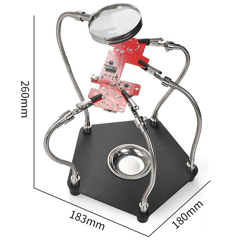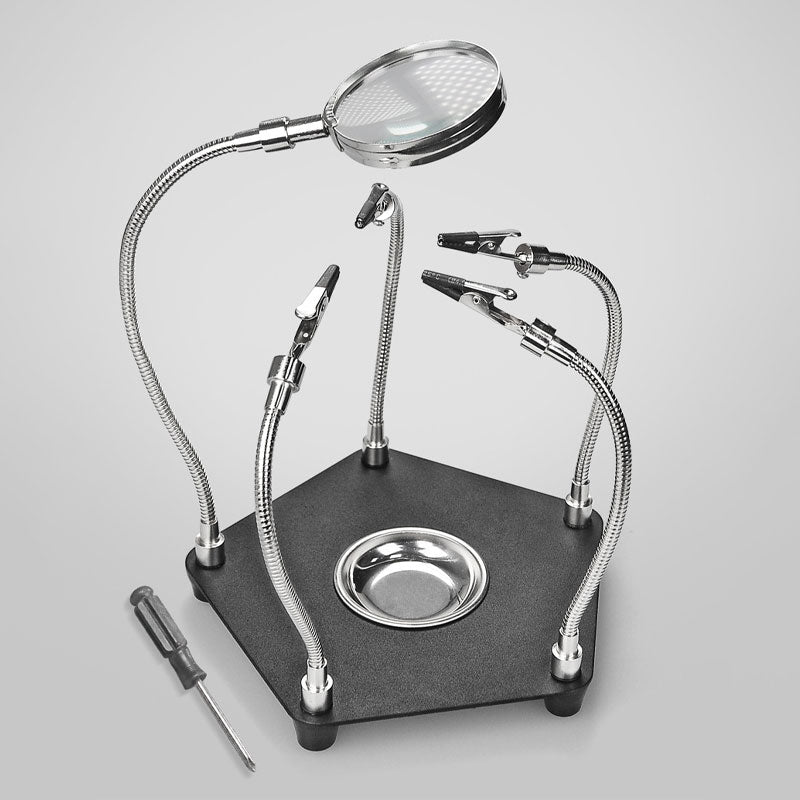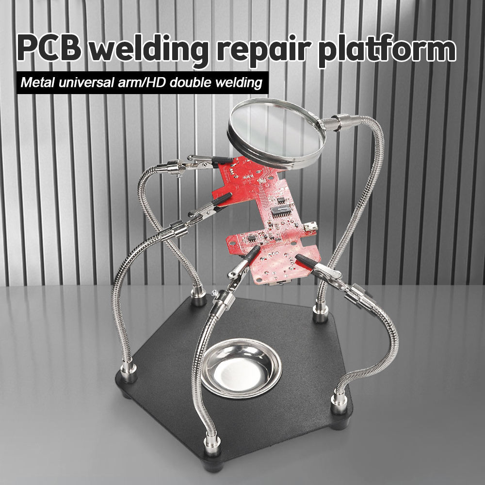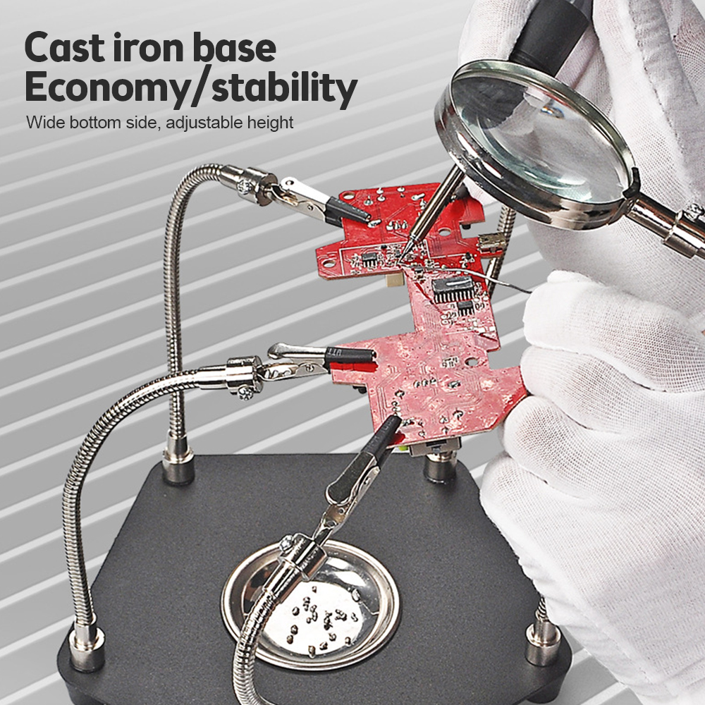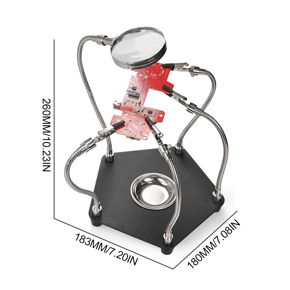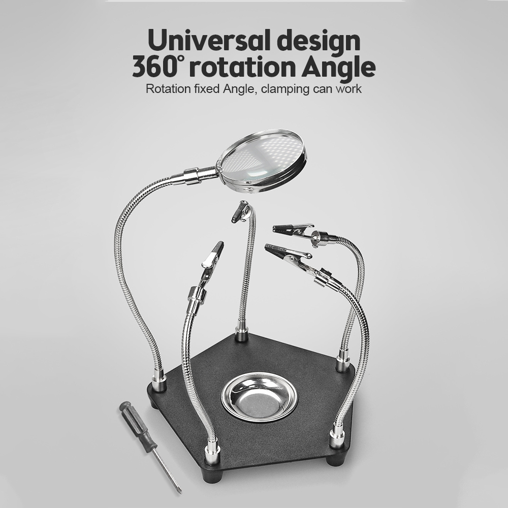 TE-806 Soldering Station 360-Degree Rotation Welding Tool with 5PCS Flexible Arms Clip and Magnifier