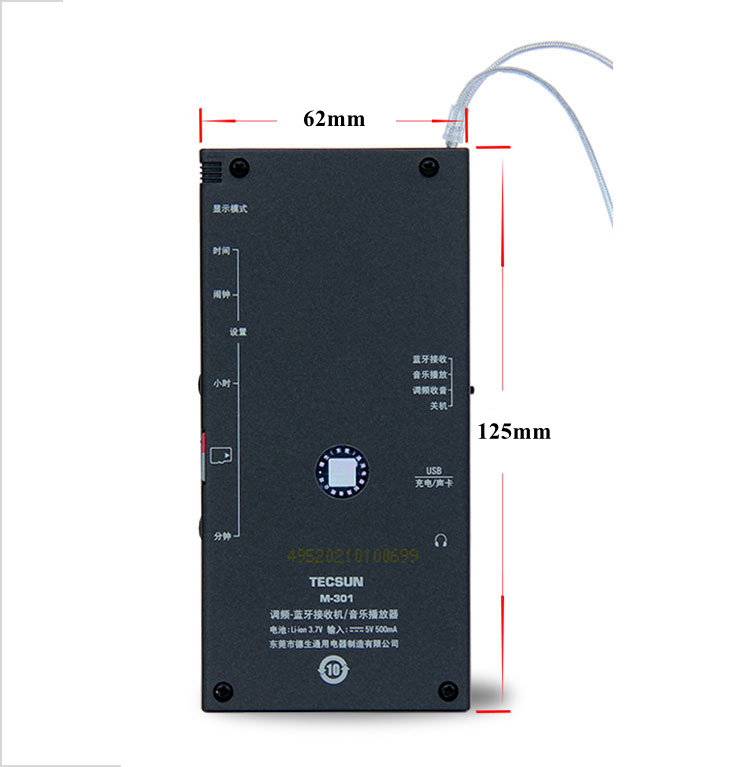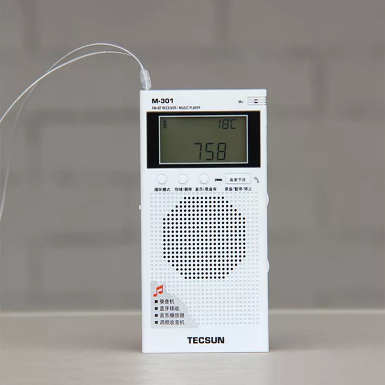 TECSUN M-301 FM-BT Receiver Music Player Mini FM Radio 64-108MHz Bluetooth Receiver w/ Earphones