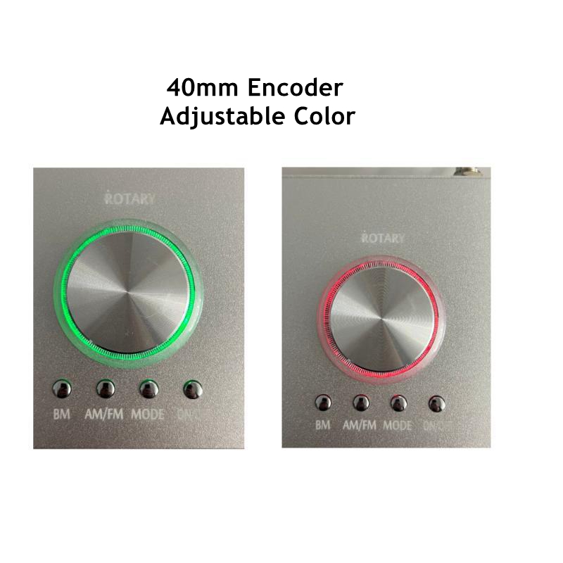- ON/OFF: Press and hold for 3 seconds to turn on or off the device, press once to enter the volume function of the encoder, press again to exit, and the encoder will enter the frequency adjustment mode. Press twice continuously to enter the atmosphere light selection mode, and press twice continuously to exit.