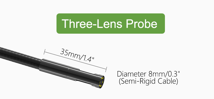 - Three-Lens: One button to switch between two side lenses. Focal length of front lens 30-80mm/1.2-3.1"; focal length of side lens 20-60mm/0.8-2.4". Suitable for more scenes