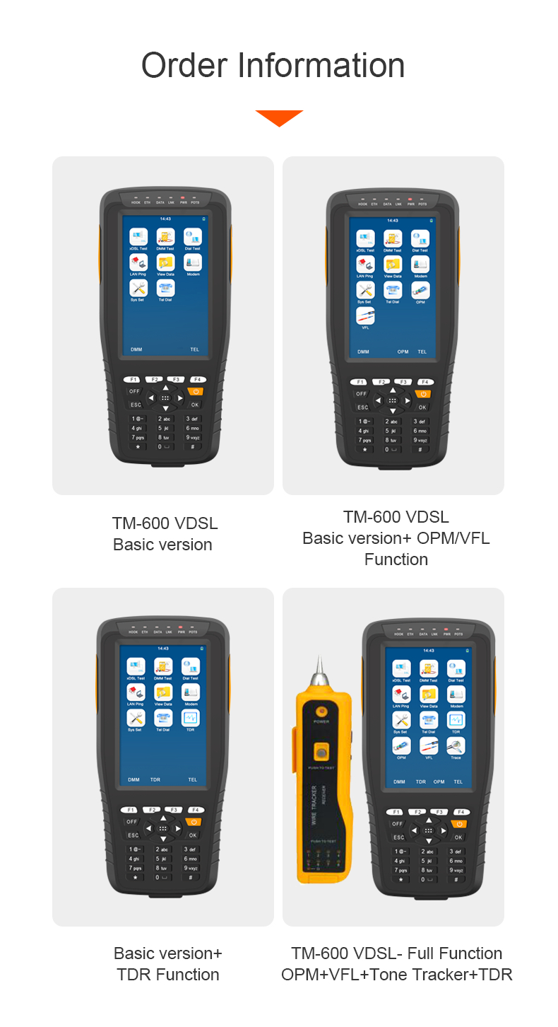 TM-600 VDSL Tester Full Function Version (ADSL/VDSL2/OPM/VFL/TDR Function/Tone Tracker)