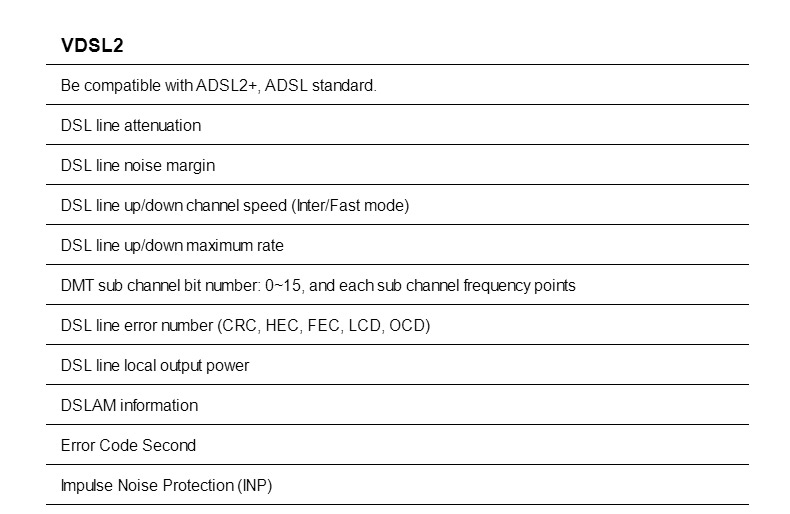 - Test objects: ADSL; ADSL2; ADSL2+; READSL; VDSL2