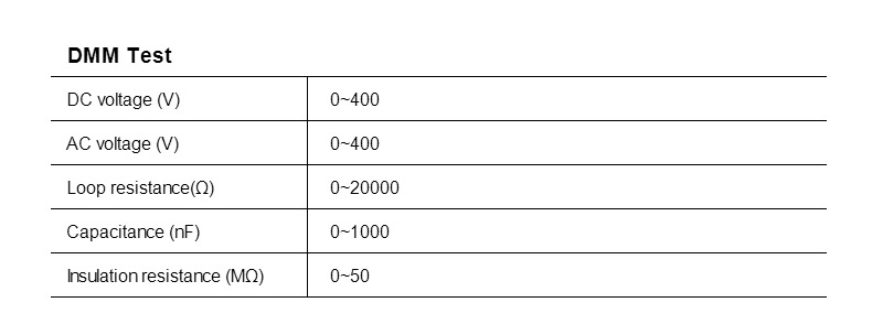 - Fast Copper tests with DMM (ACV, DCV, Loop and Insulation Resistance, Capacitance, Distance)