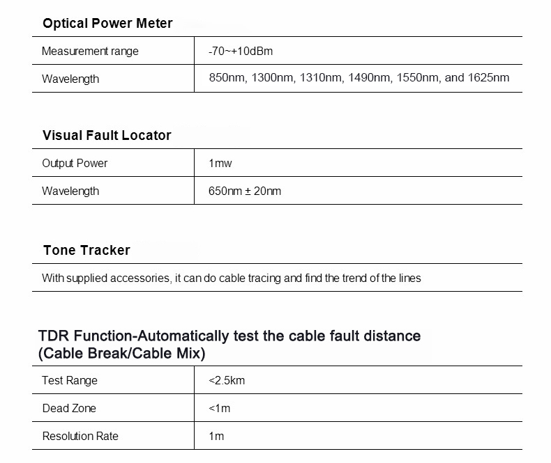 TM-600 VDSL Tester also introduces the Optical Power Meter and Visual Fault Locator function into the unit, as well as the TDR function;
