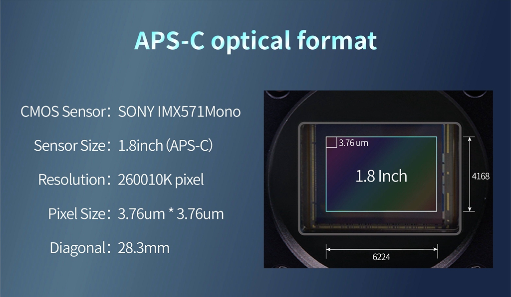ToupTek ATR3CMOS26000KMA Astronomical IMX571 Mono Camera 512MB DDR3 Buffer with APS-C Optical Format