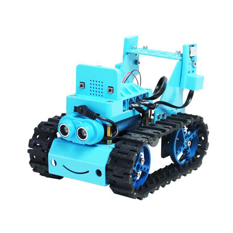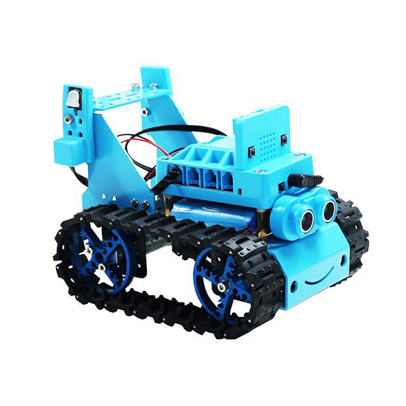 - Various fun games. Automatic obstacle avoidance function: the obstacle information is fed back through ultrasonic ranging sensor, so as to realize the automatic obstacle avoidance function. Tracking function: Automatically recognize black line through the tracking sensor and follow the black line to realize automatic walking. Walking in the wild: Tracks allow the robot to complete climbing and other actions on more complex terrain. Colorful RGB lights: Through the programming program, multiple colors of lights can be set to display circularly. Dot matrix display interactive multiple play: You can DIY fun texts, let you add more fun when operating. Robot mobile phone interaction: Through APP control, the car can complete the actions of turning, rotating, advancing and retreating.
