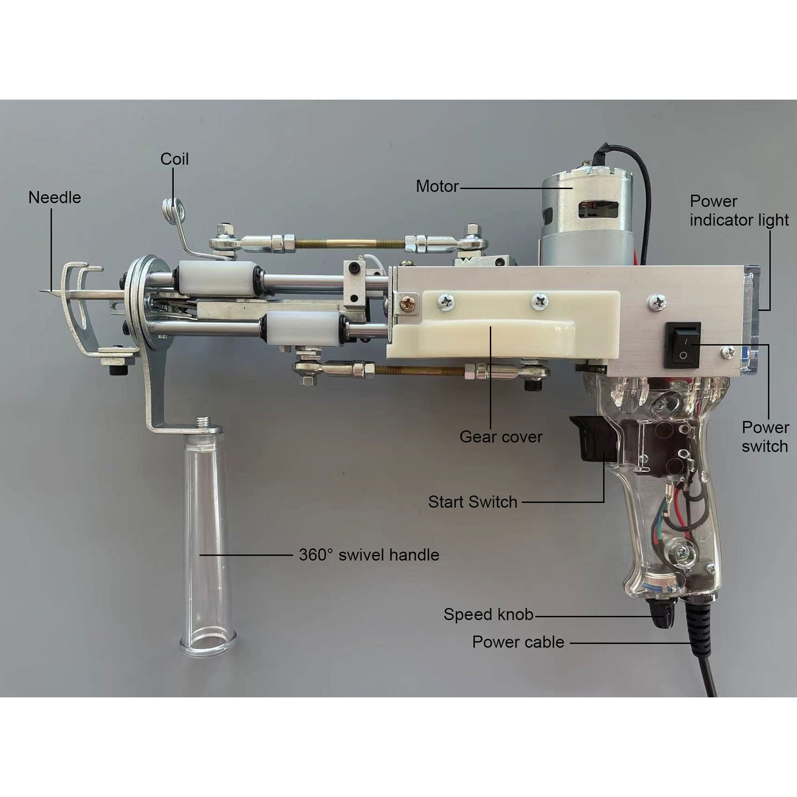 Transparent Tufting Machine Electric Carpet Tufting Gun Tool w/ Gear Cover for Loop Pile Cut Pile