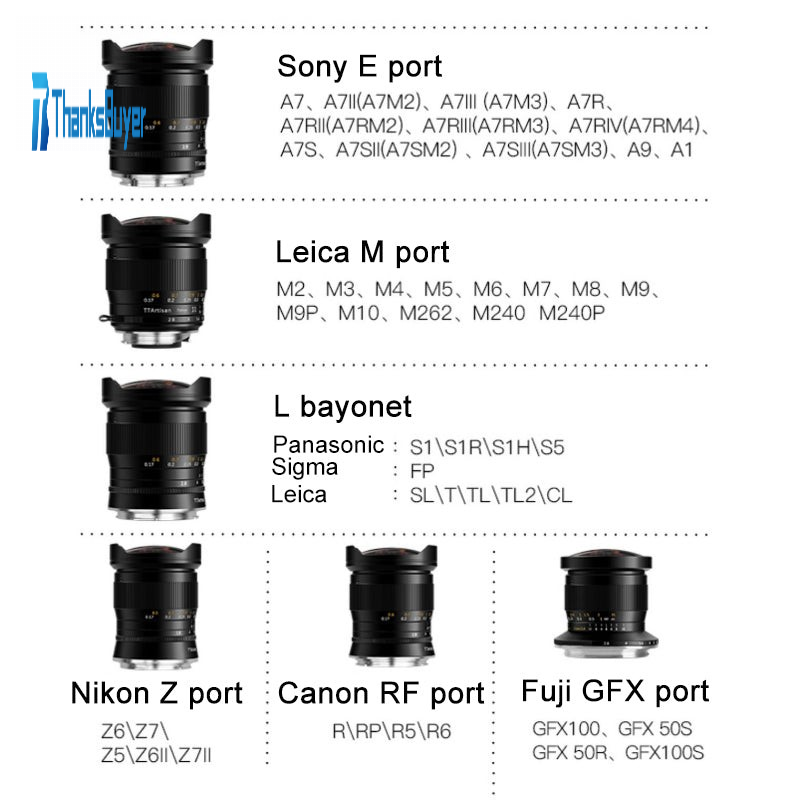 - Lenses with other mount types pictured are not included in the package.