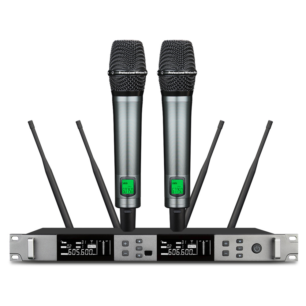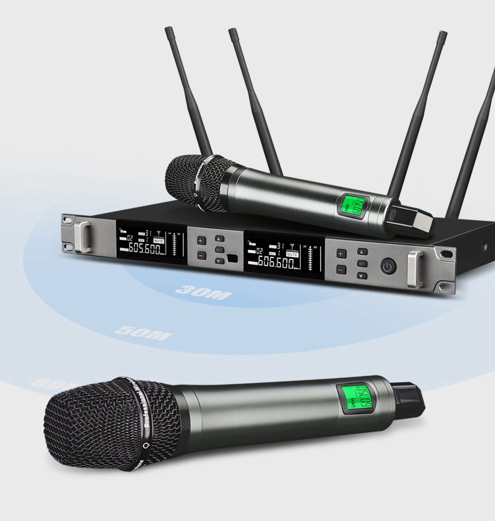 - Professional-grade wireless microphones adopt true diversity frequency modulation technology