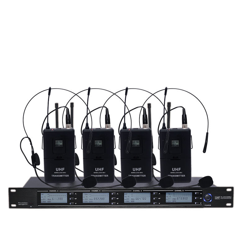 TZT U-84 UHF Wireless Headset Microphone System Cordless Microphone System w/ 4 Black Head Mics