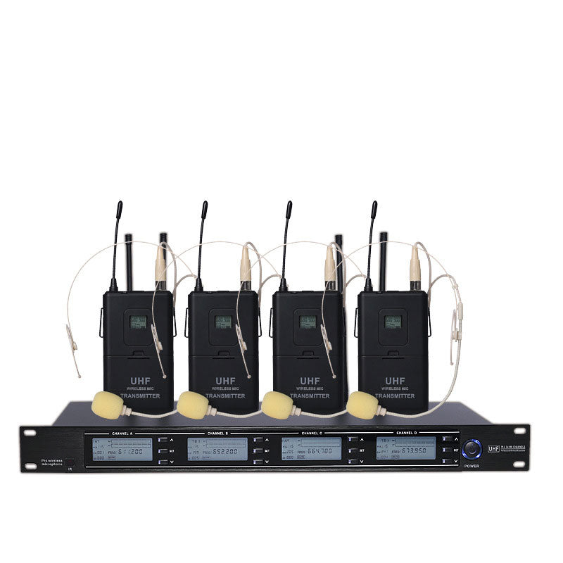 TZT U-84 Wireless Headset Microphone System UHF Cordless Microphone System w/ 4 Beige Head Mics