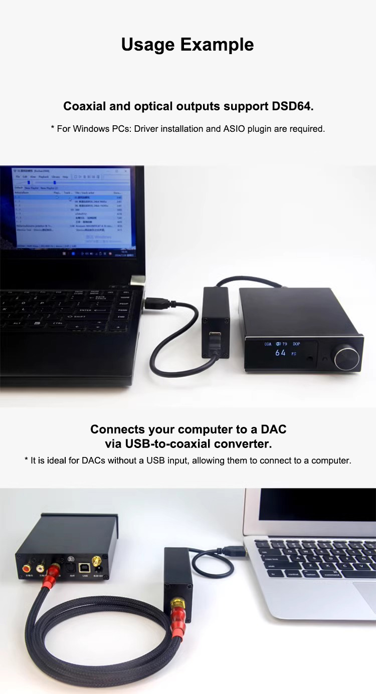 U0 Series USB Digital Interface (U0b with Italian USB Interface) USB to Optical Coaxial Output DSD64