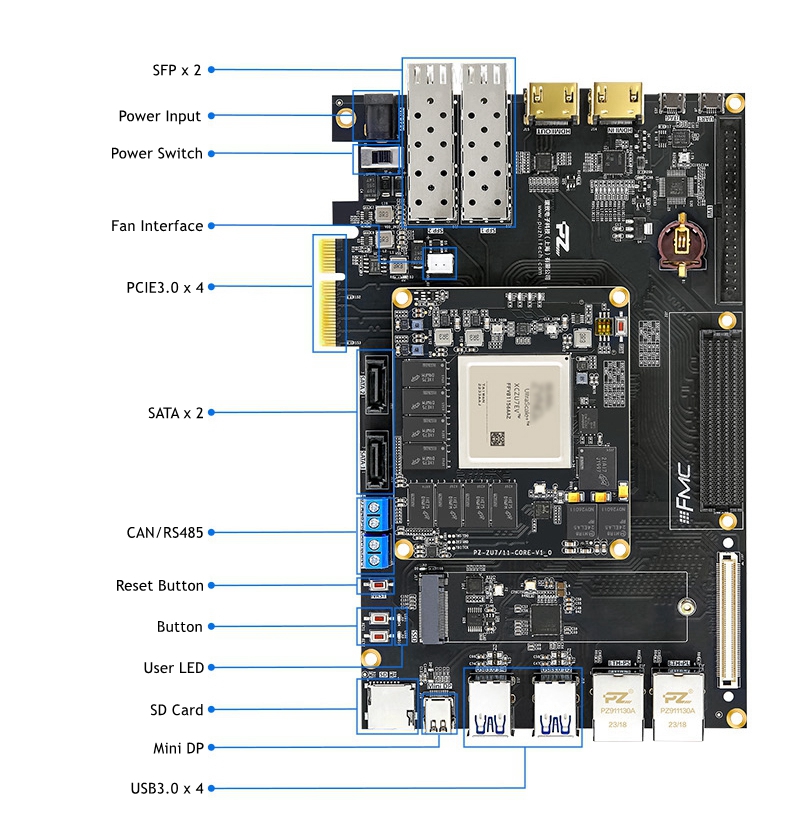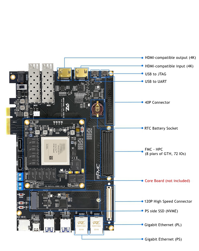 UltraScale+ Development Board Integrated JTAG Downloader 4K HDMI-compatible Input and Output for Xilinx ZYNQ