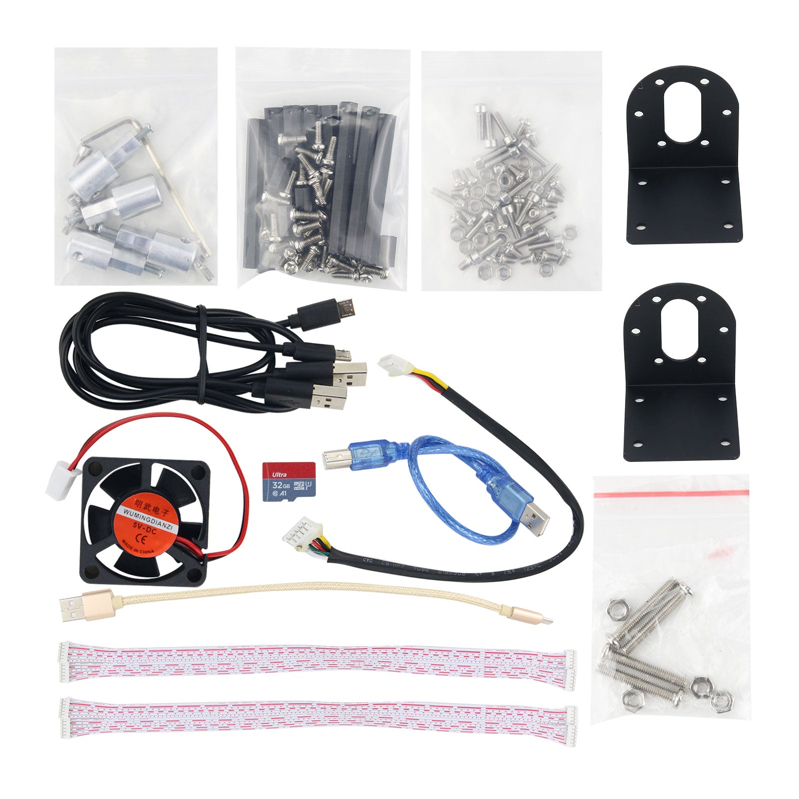 - 1 x Set of Chassis (Encoding Motors + Motor Brackets + Chassis + Screws Nuts + Motor Cables)