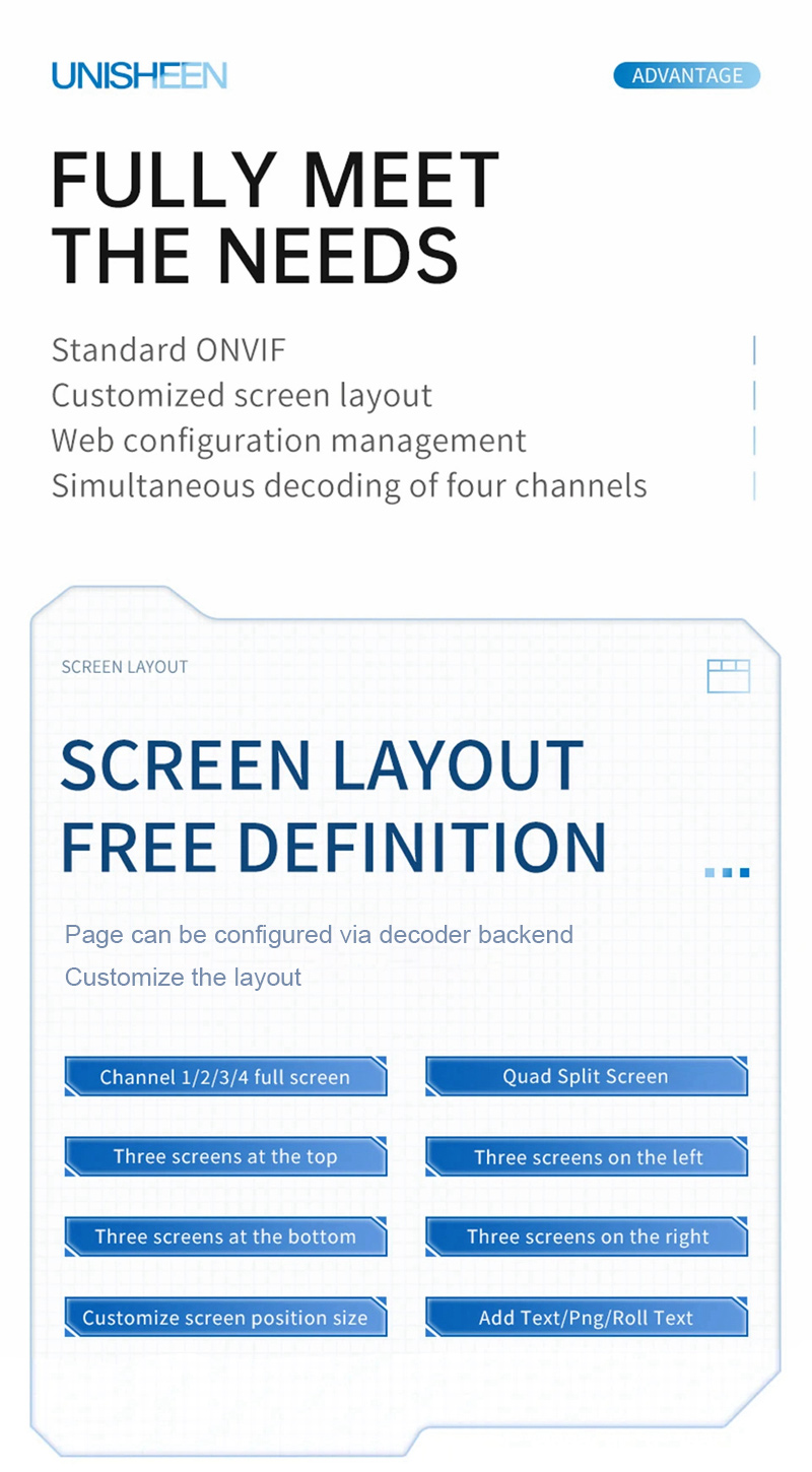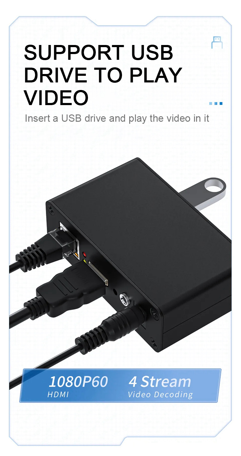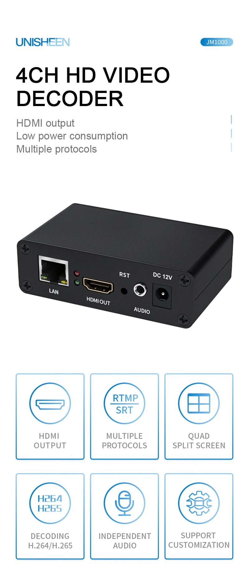 Unisheen JM1000-Plus 4CH Video Decoder H.264 H.265 Decoder Supports USB Drive RTSP SRT RTSP RTMP