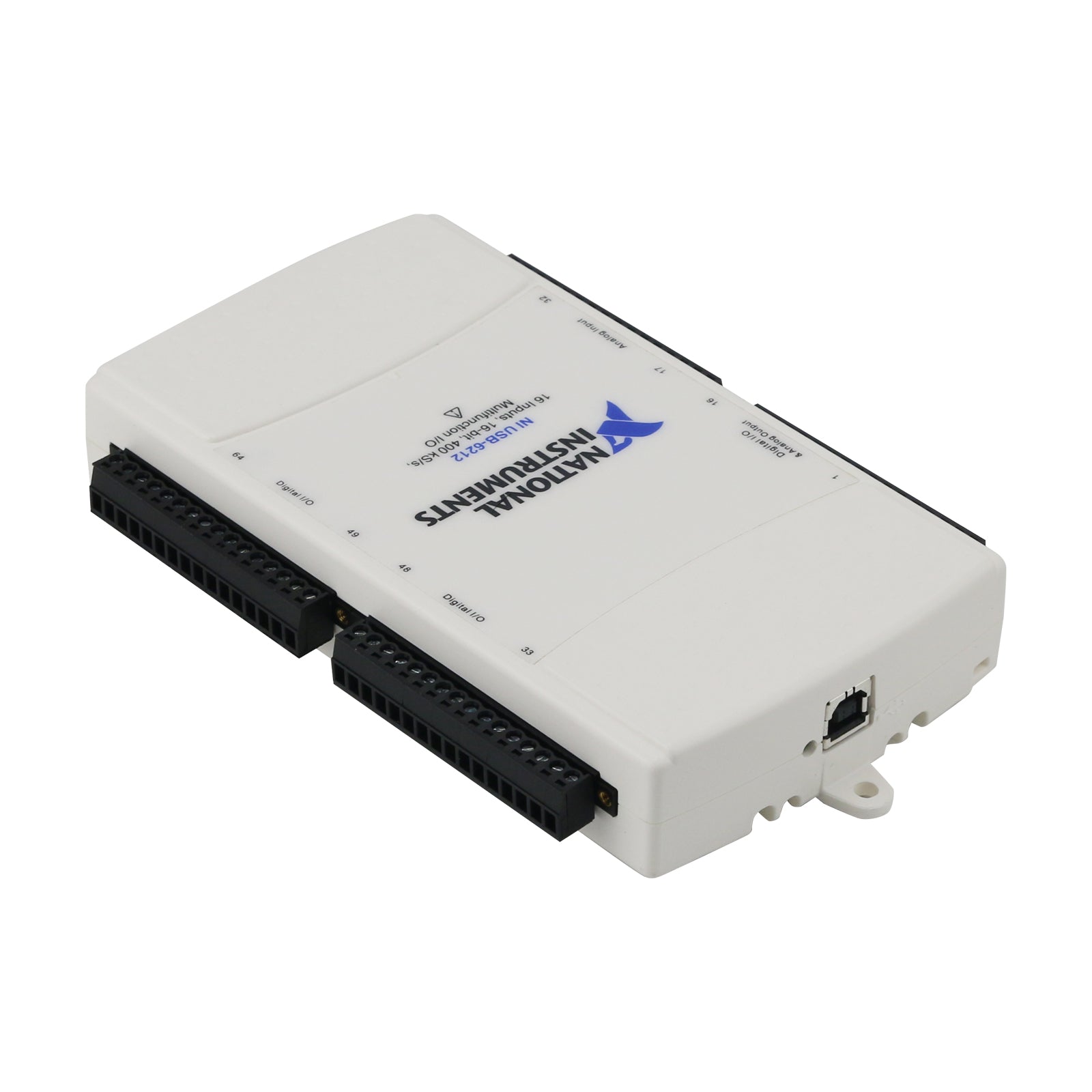 The USB-6212 features a lightweight mechanical housing. It is bus powered and very portable. Additionally, its included NI-DAQmx drivers and configuration utilities simplify configuration and measurement.