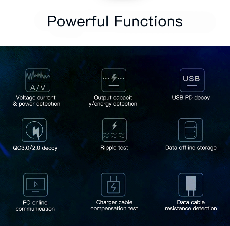 USB Tester Meter PD Tester Voltage Ammeter Quick Charge Data Cable Charging Head Programmable YK001