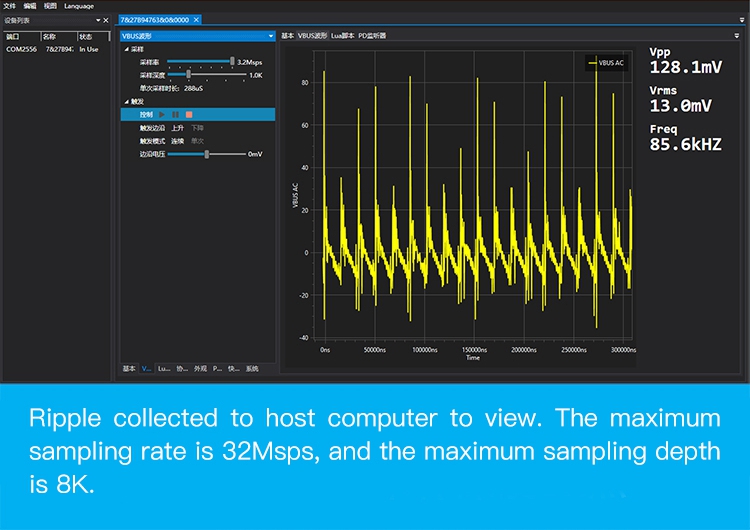6. The VBUS ripple can be viewed through the 3.2Msps ADC.