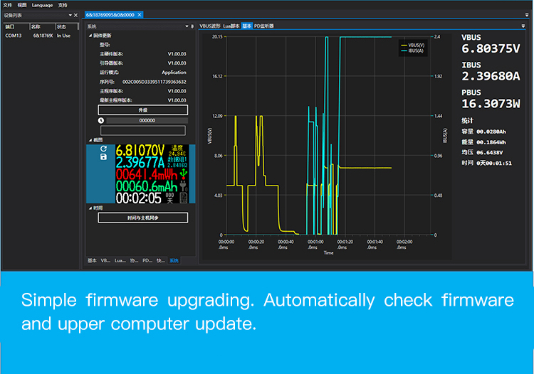 3. The completely rewritten host computer is far more powerful than the previous generation host computer. Can open more, high-speed recording, super long ripple capture, lua program download and debug, PD monitoring, deception control, software firmware automatic update, more beautiful interface.