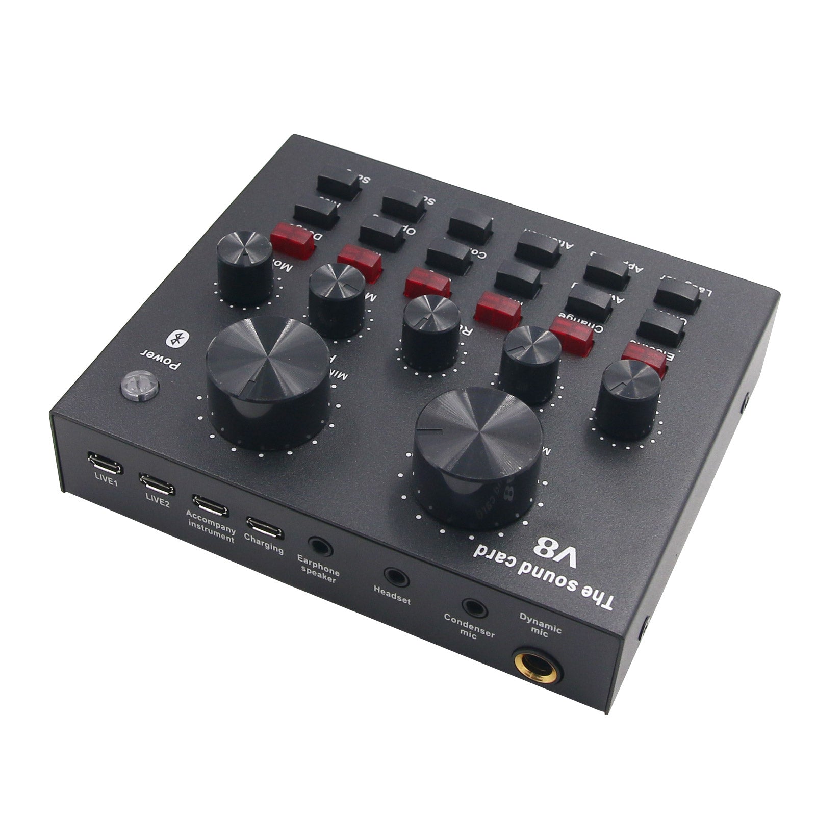 V8 Sound Card Live Sound Card Support Dual Mobile Phones 12 Sound Effects For Live Online Singing