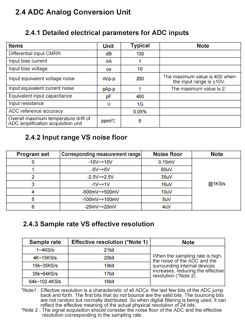 * 102.4Ksps sampling rate: With 102.4ksps sampling rate per channel, it has high speed, high resolution and high accuracy