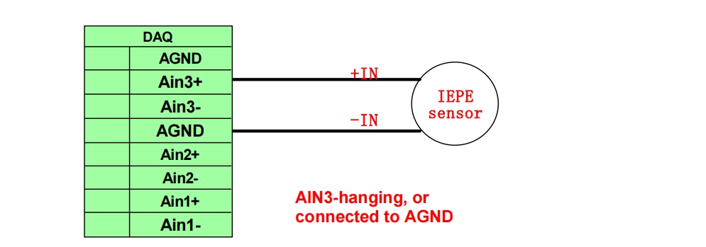 * For IEPE sensors, AGND serves as the negative end of the input, and AIN+ serves as the positive end of the input