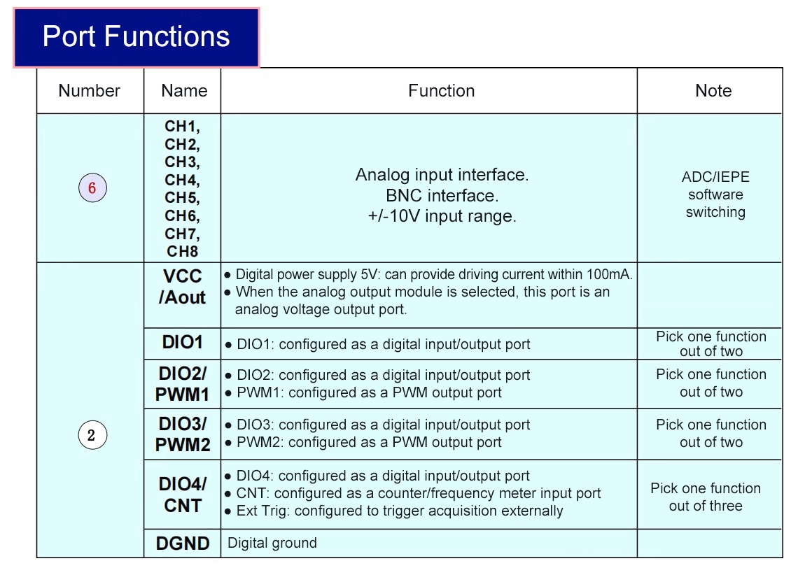 * In IEPE mode, the output of 24V 4mA (compatible with 2mA), the ADC input automatic switching of ac coupling input state. 8 channels can be switched independently.