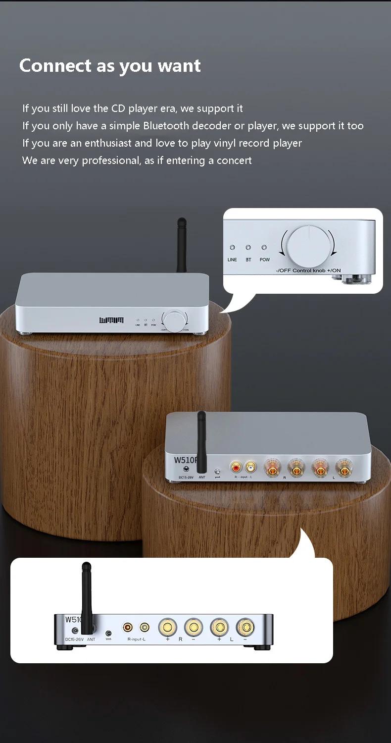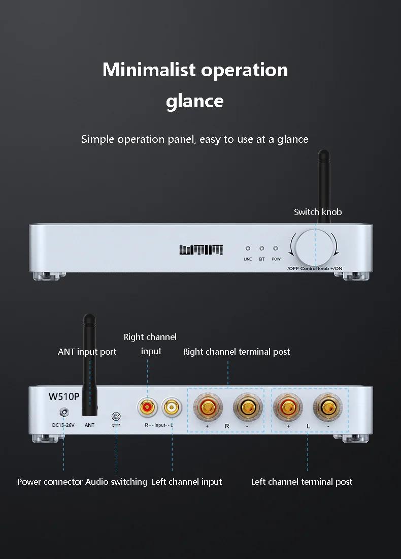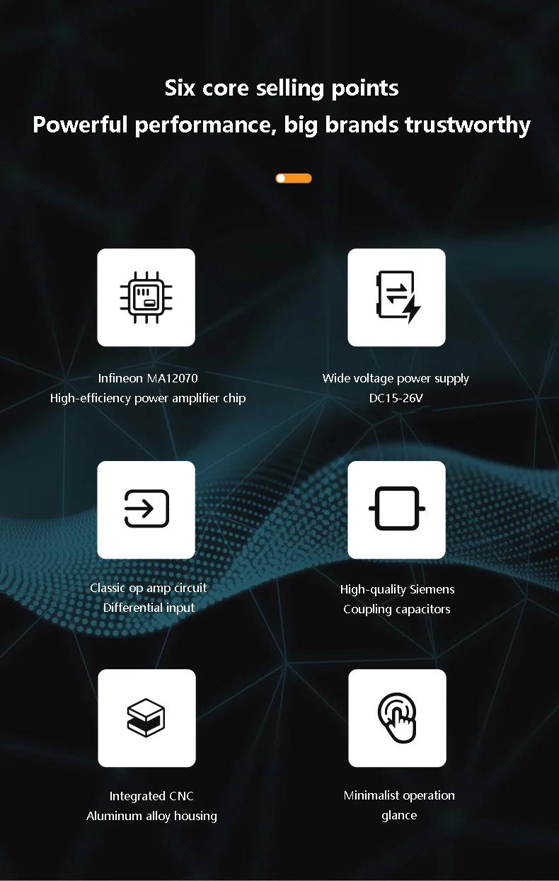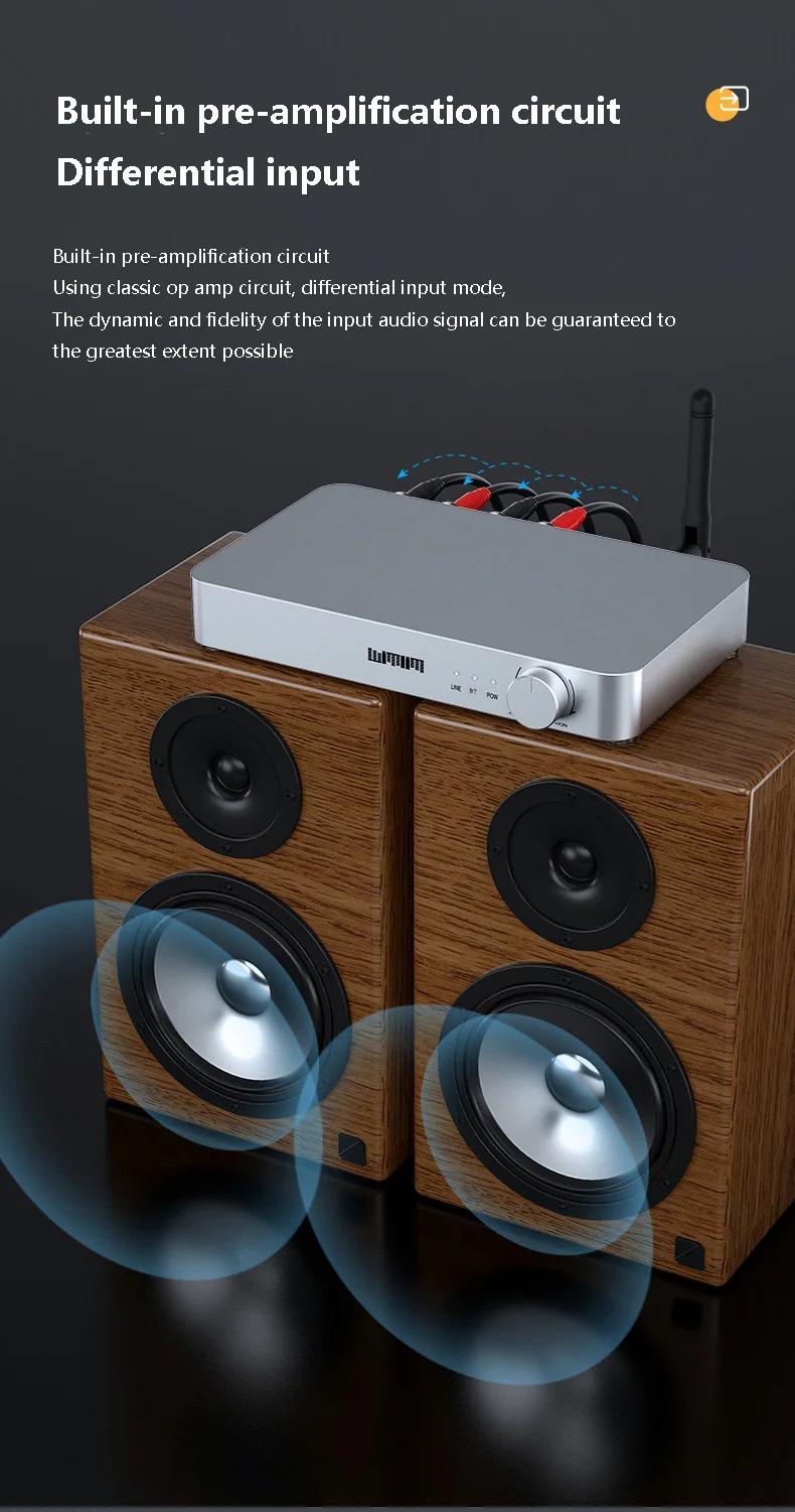 W510P HiFi Audio Stereo Class D Digital Power Amplifier MA12070 Dual Power supply Built-in Preamplification Circuit