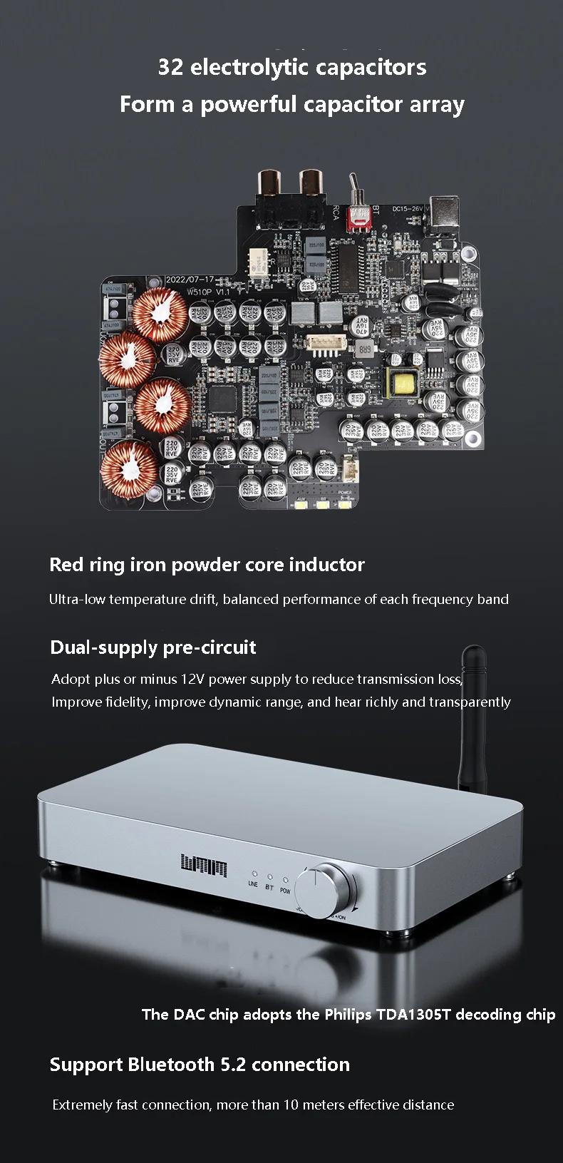 - Built-in pre-amplification circuit, using classic op amp circuit, differential input mode, can ensure the dynamic and fidelity of the input audio signal to the greatest extent.