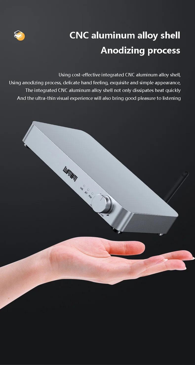 - Using costly integrated CNC aluminum alloy shell, using anodizing process, delicate feeling, exquisite and simple appearance, integrated CNC aluminum alloy shell not only dissipates heat quickly and ultra-thin visual experience will also bring good pleasure to listening.