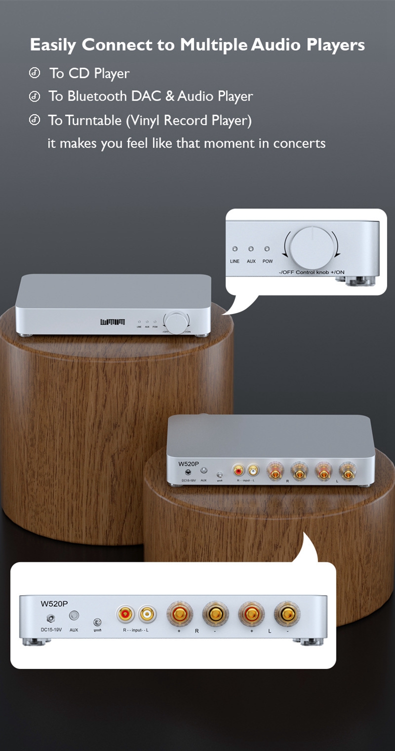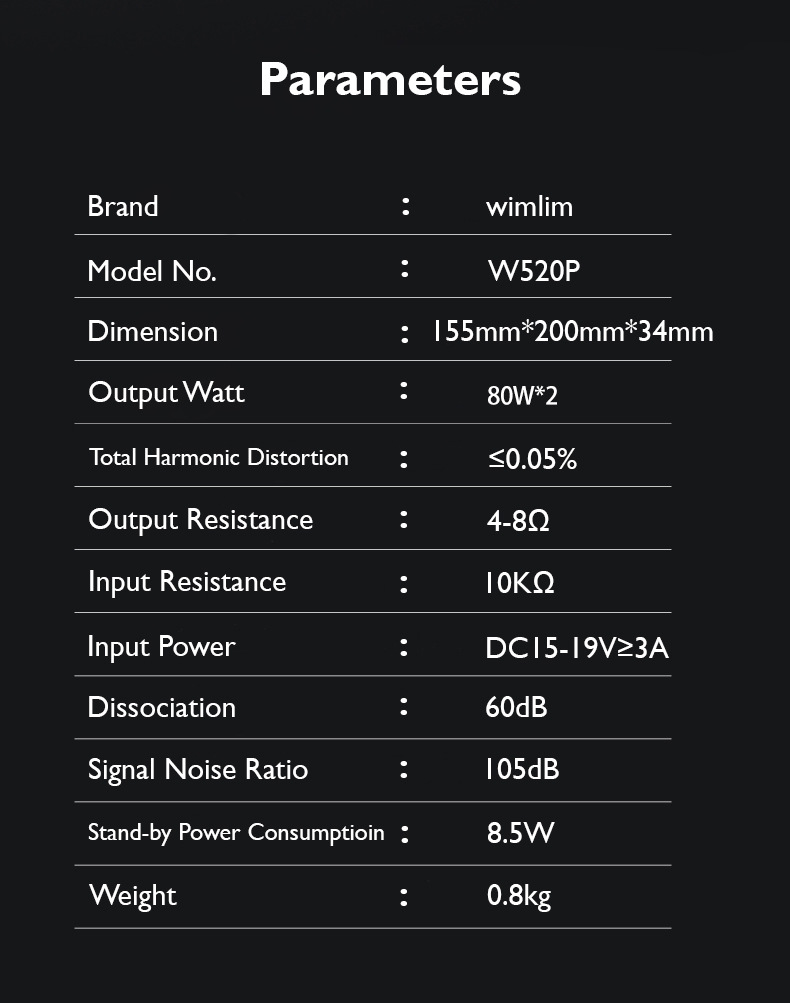 W520P HiFi Stereo Class D 80Wx2 Digital Power Amplifier TDA8920CTH Amplifier IC Support Differential Input