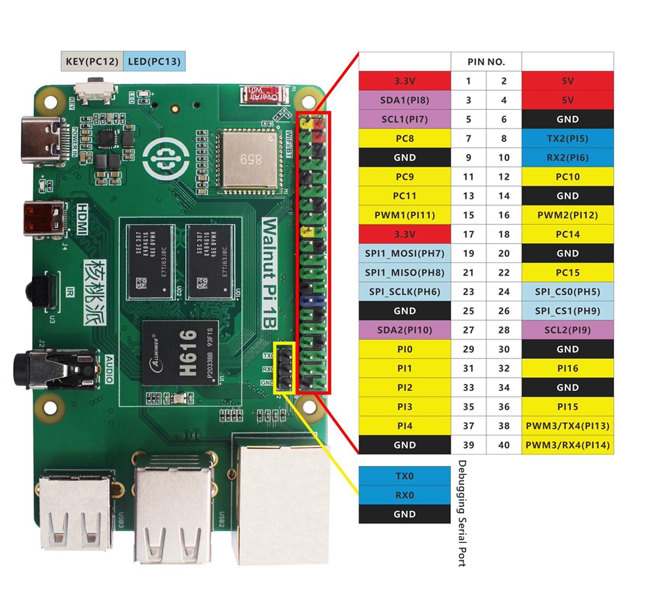 - The Walnut Pi system has been ported with WiringPi. For WiringPi is a software package written in C language (early used for Raspberry Pi) that can be used for GPIO pin control, serial communication, SPI communication, and I2C communication functions of Walnut Pi. It is very suitable for people familiar with C/C++to conduct software development on Walnut Pi.