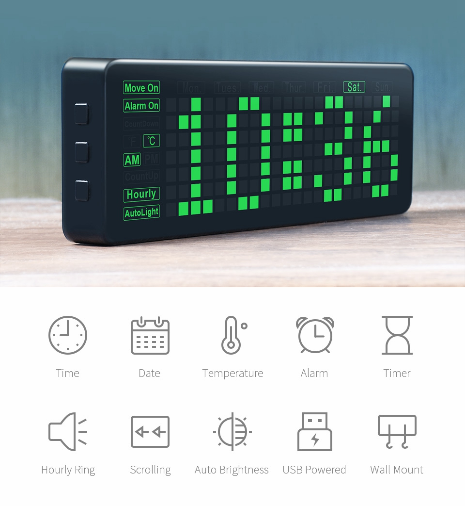 Waveshare Pico-Clock-Green-EN Creative High Precision Multifunctional LED Matrix Digital Electronic Clock for Raspberry Pi Pico