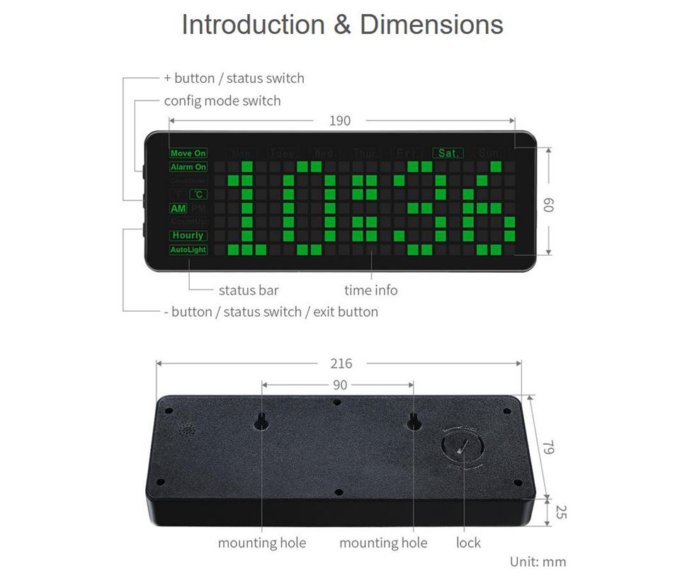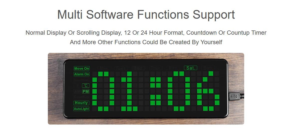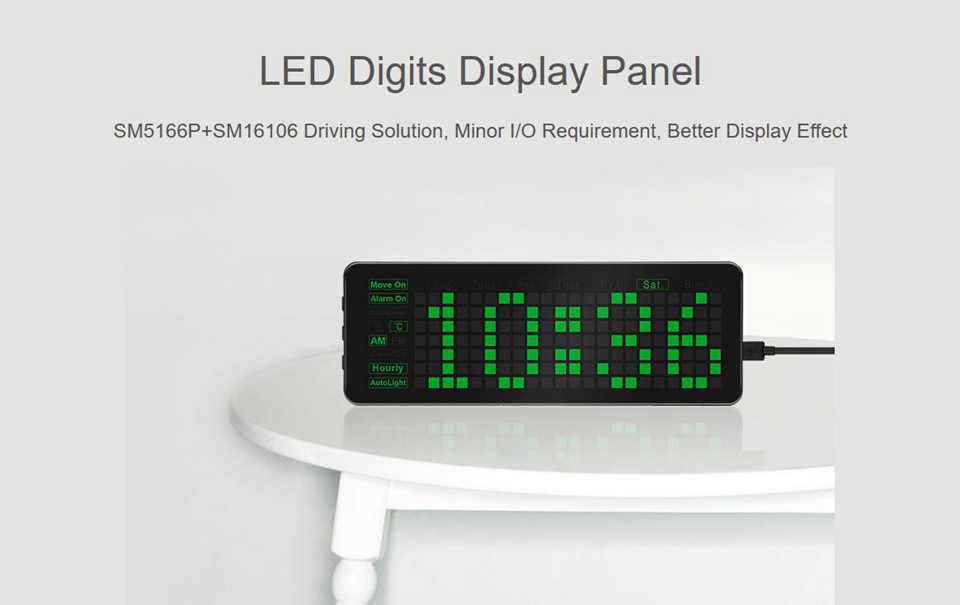 - On board LED dot matrix display panel, using SM5166P+SM16106 driver scheme, saving I/O resources, and featuring good display effect.