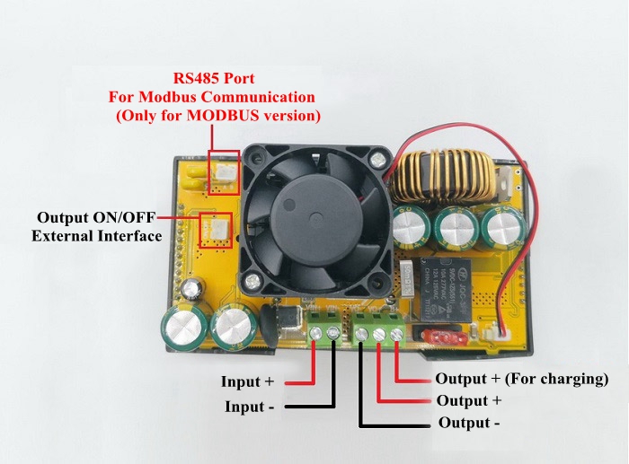 - Wiring mode: terminal VI+ is input positive, VO+ is output positive, B+ is a dedicated interface for charging