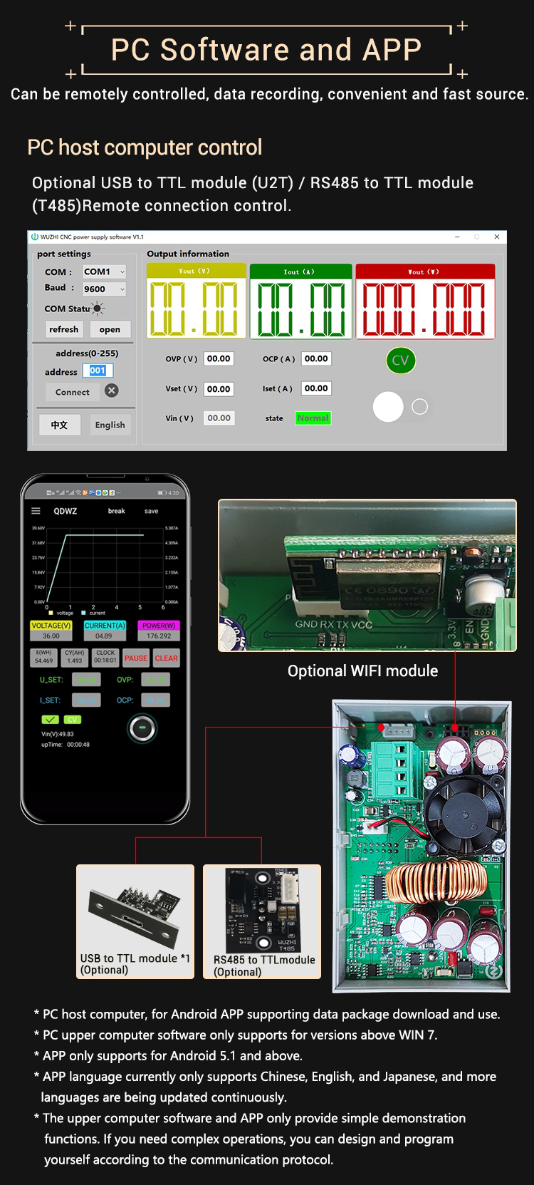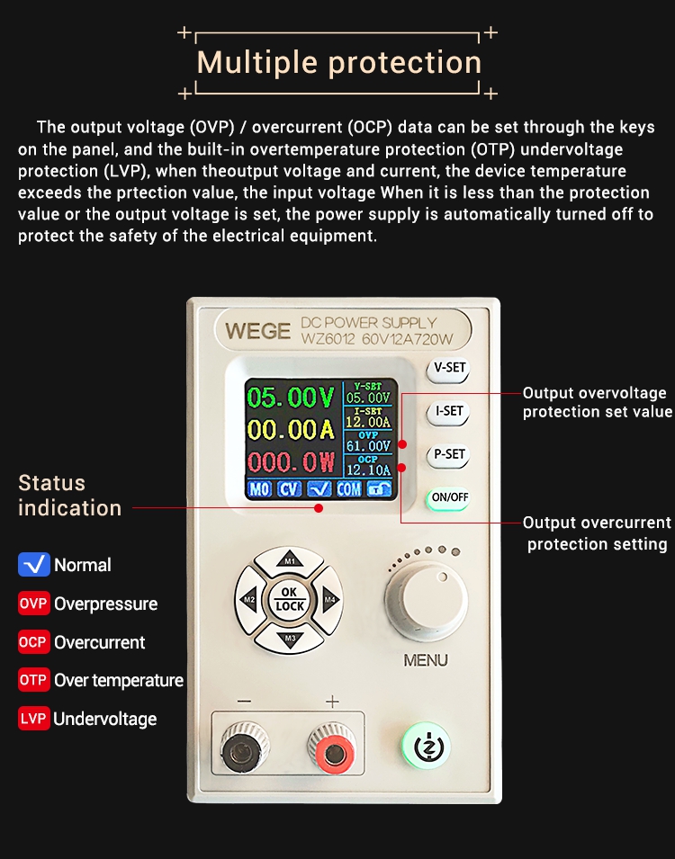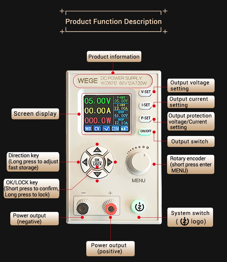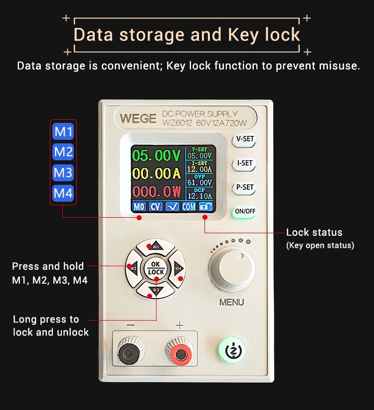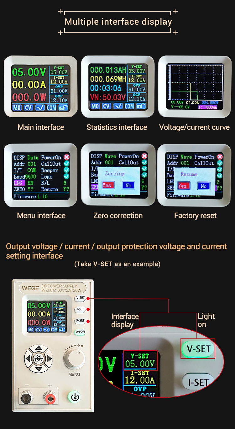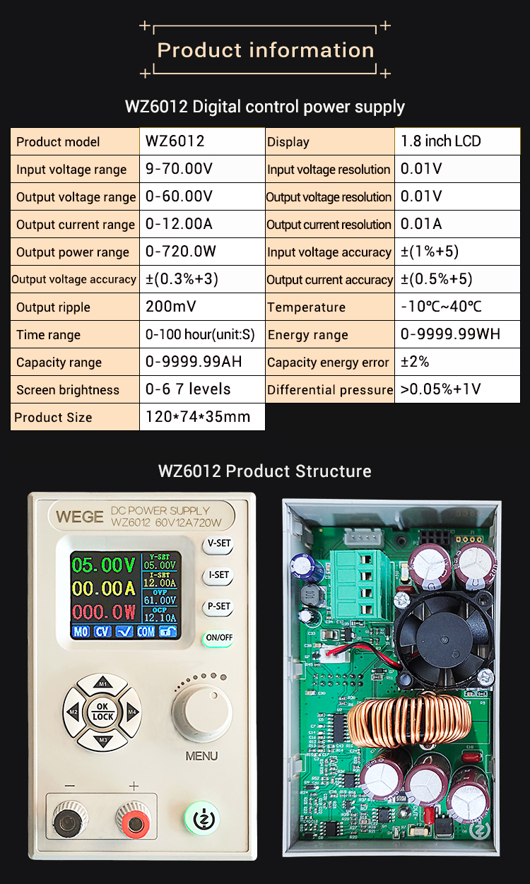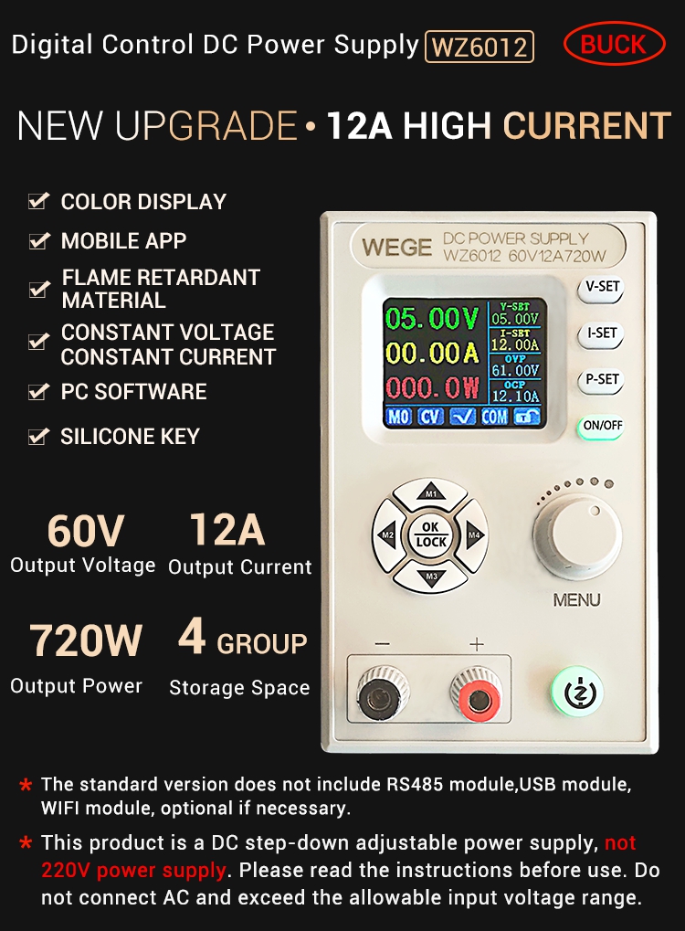 WEGE WZ6012 DC Power Supply 60V 12A 720W Variable DC Power Supply USB Communication Version