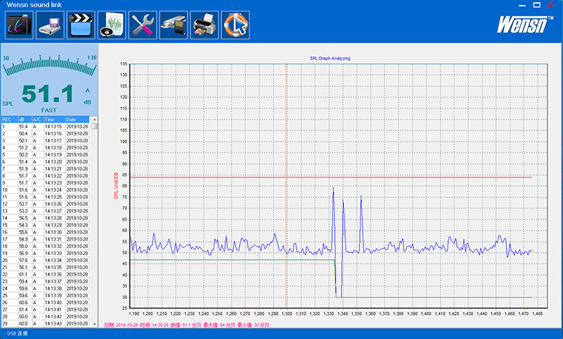 - The measurement range is 30-130dB. The measurement accuracy is ±1.5dB