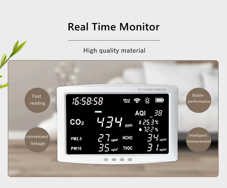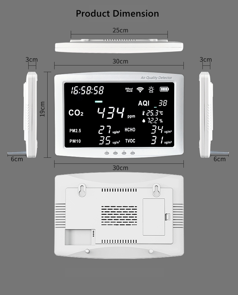 - Function: CO2/PM2.5/PM10/TVOC/HCHO/Temperature/Humidity detection