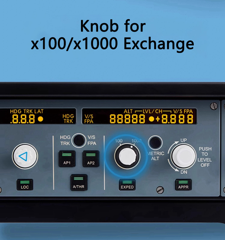 Experience perfection with our LCD, which goes beyond generic displays, flawlessly replicating every intricate detail of the actual unit. Meanwhile, our custom dual concentric ALT and Knob, featuring an external knob for x100/x1000 exchange, ensures an authentic experience. The display window content, colors, and fonts are all meticulously matched to the real aircraft, delivering an unparalleled level of realism.