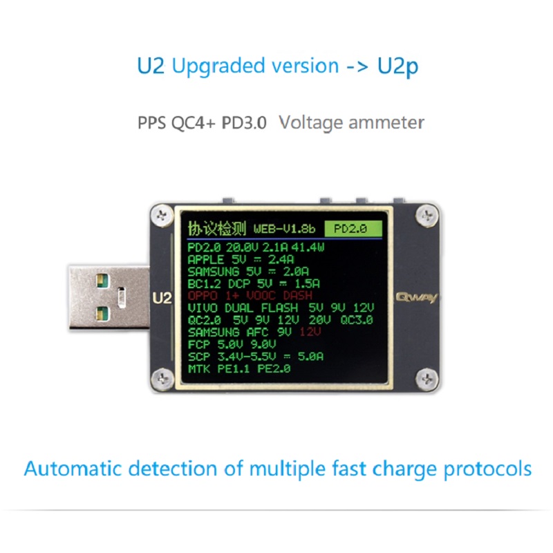 WITRN-U2 Current Voltage USB Tester Meter QC4+ PD3.0 2.0 PPS U2p w/o Shell (w/Bluetooth 4 Buttons)