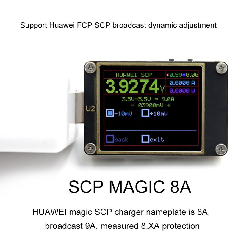 13. Support for Huawei FCP SCP broadcast dynamic adjustment,For HUAWEI magic SCP charger nameplate is 8A, broadcast 9A, measured 8.XA protection