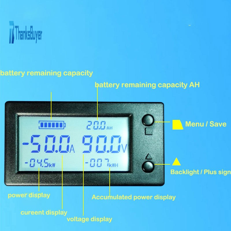 remaining capacity meter that displays voltage, current, power,