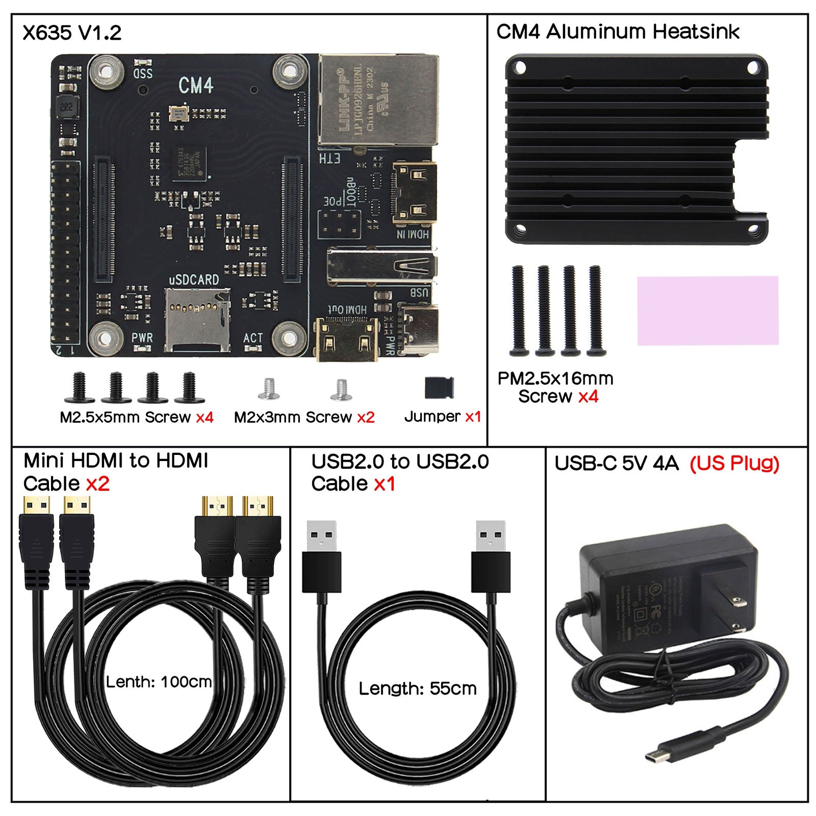 X635 Expansion Board Carrier Board with C235 Heatsink and Power Adapter HDMI to CSI-2 for CM4 M.2 NVME SATA SSD for Raspberry Pi
