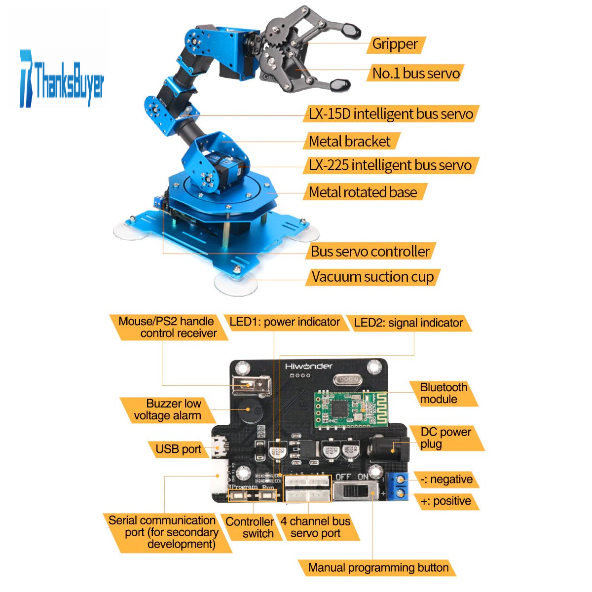 - With core CPU for ARM, built-in 4.0 Bluetooth module and 16M memory, robotic arm can save 1020 actions for each group. The controller has built-in serial communication port