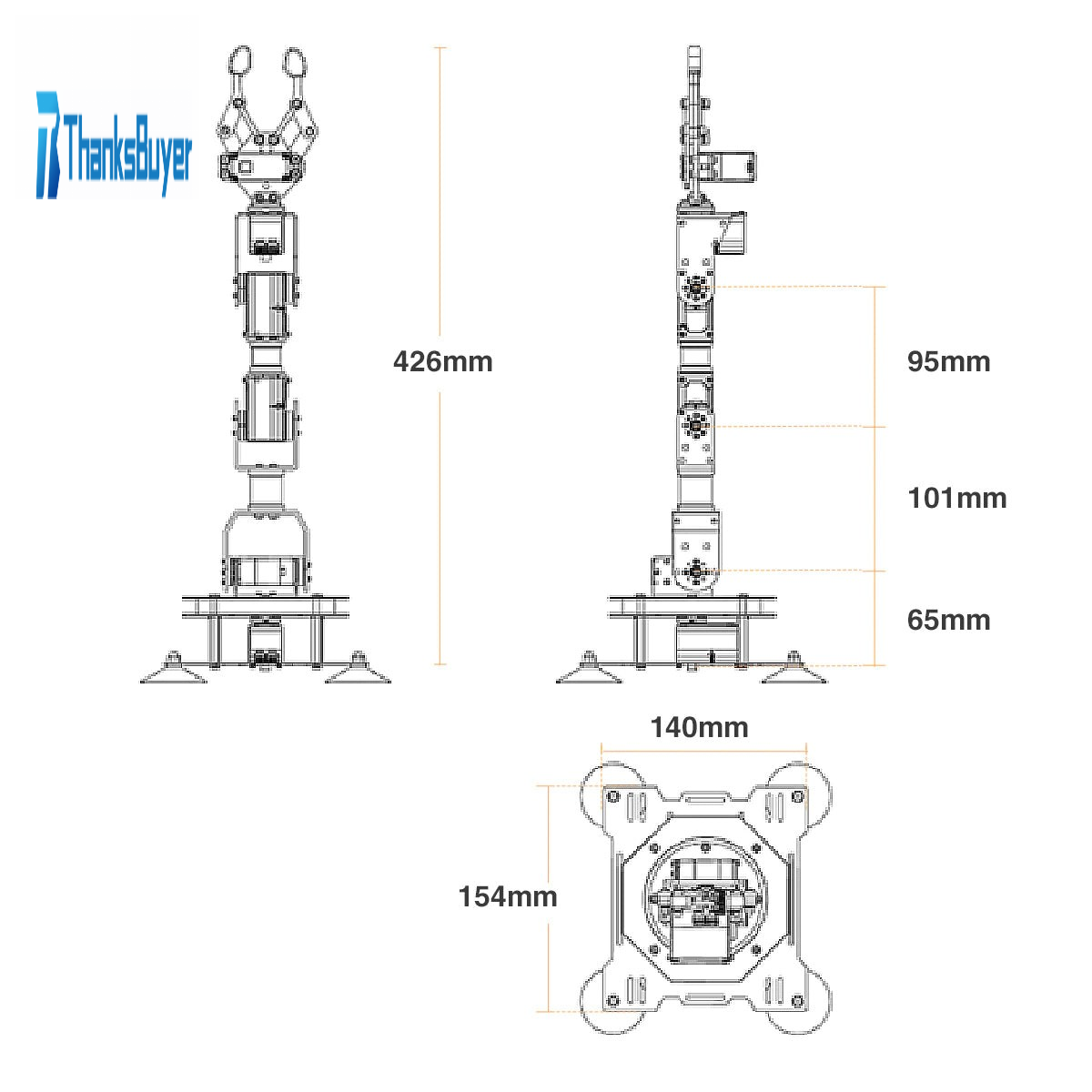 - Robot size: 154 x 140 x 426mm/6.1 x 5.5 x 16.8"